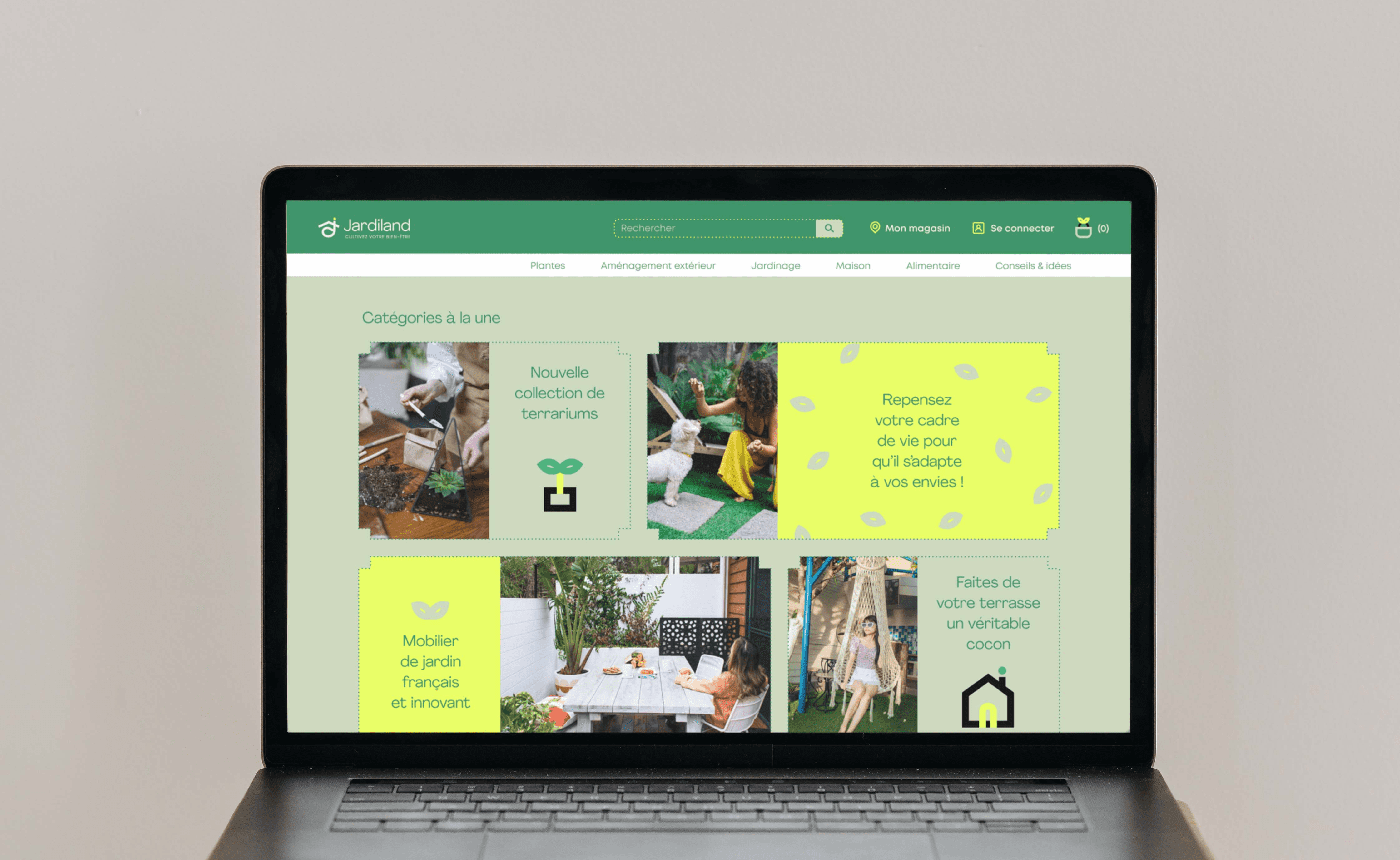 Brief : Faire une refonte du logo actuel de Jardiland, une entreprise française de distribution, spécialisée dans l'univers du jardin, de l'animal de compagnie à l'art de vivre.