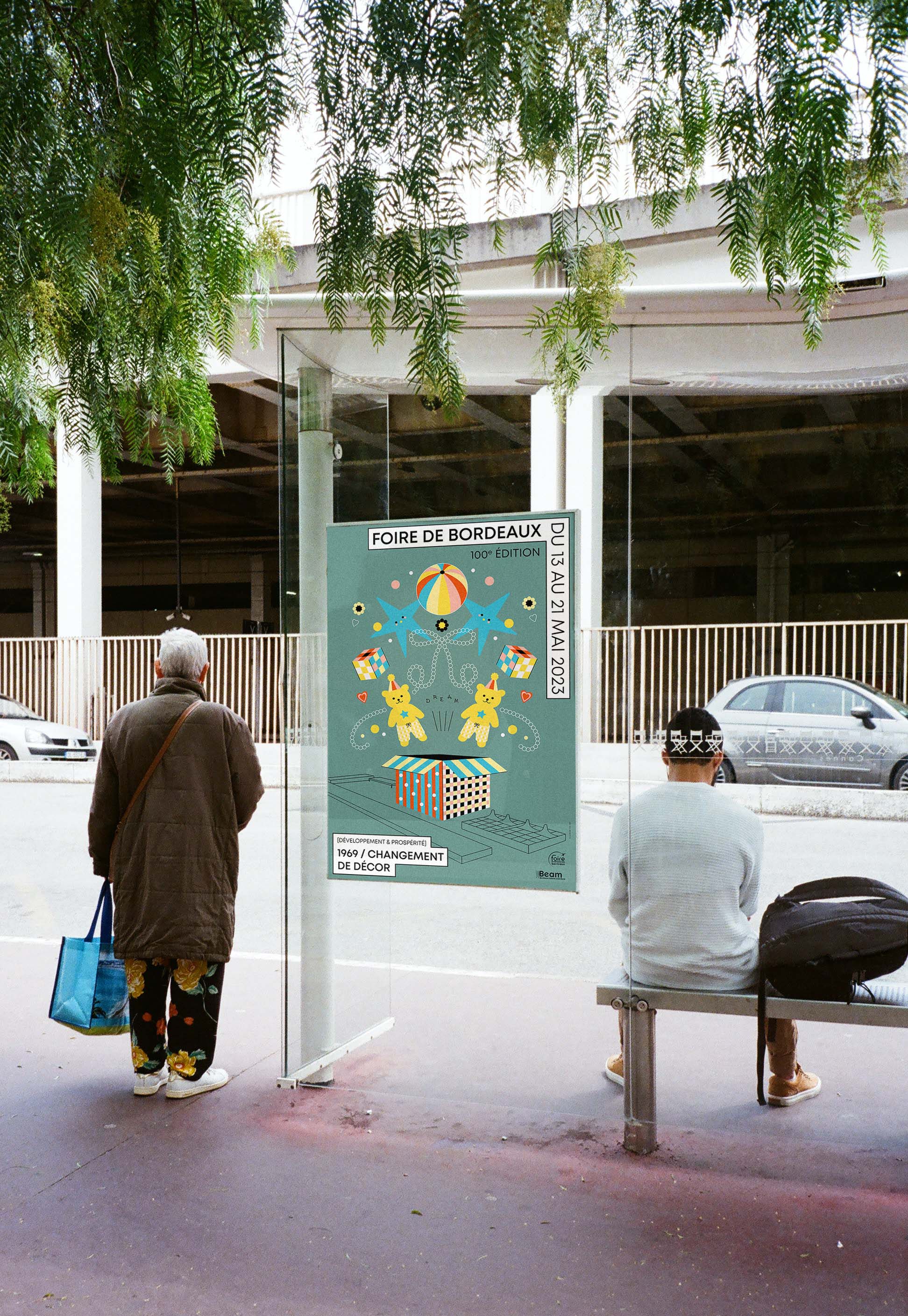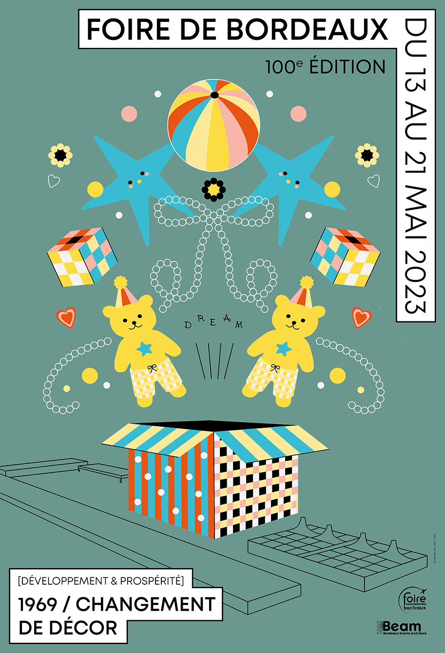 Ici, les thèmes sont "Souvenirs d'enfance" et "1969 : Changement de décor" car la foire déménage et s'installe au Parc des Expositions de Bordeaux cette année là.